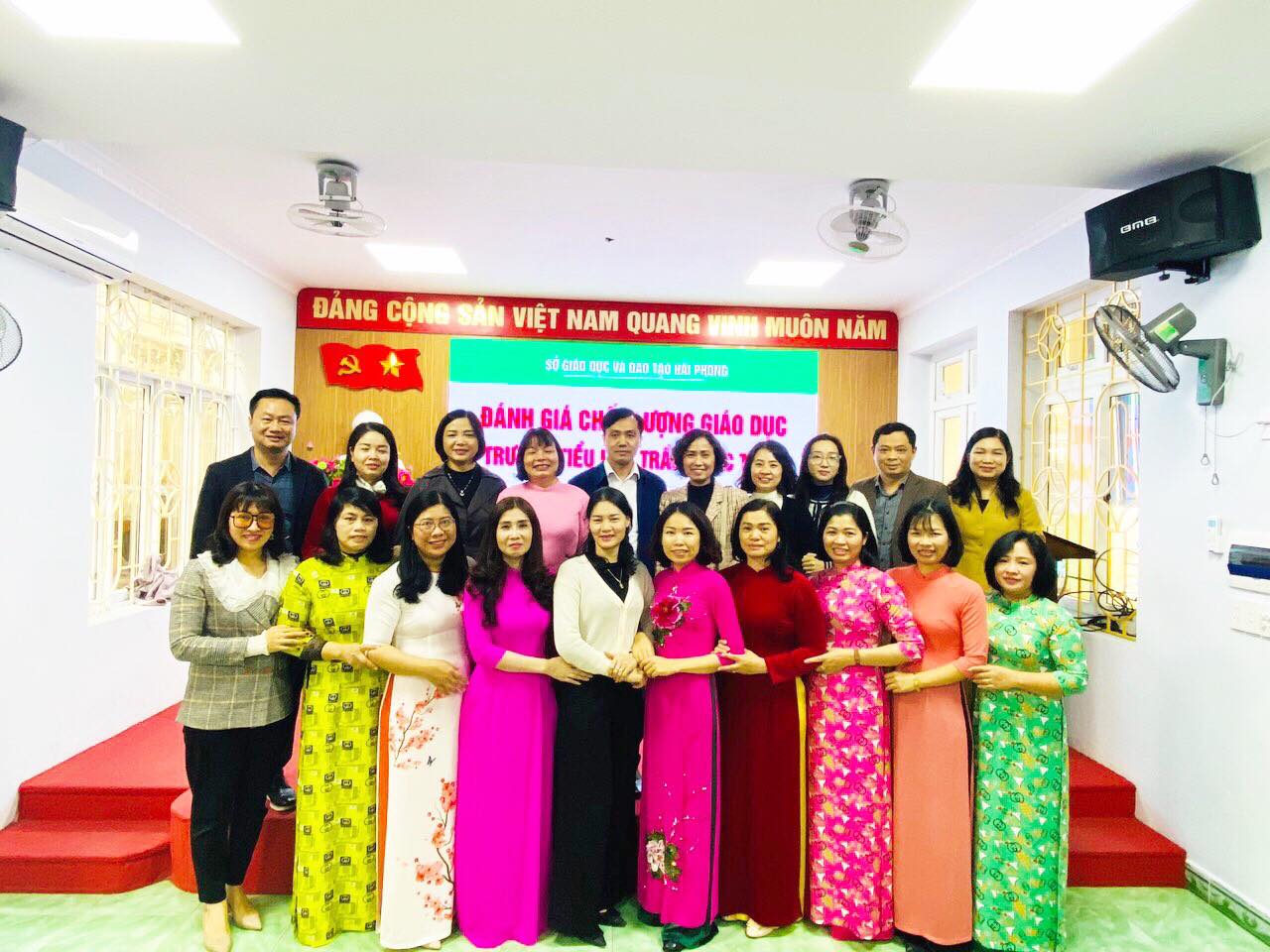 Đoàn đánh giá ngoài của Sở Giáo dục và đào tạo do đồng chí Bùi Khánh Toàn – Trưởng phòng Khảo thí và Kiểm định chất lượng giáo dục làm Trưởng đoàn. Bà Phạm Thị Hồng Vân – Phó Trưởng phòng Khảo thí và Kiểm định chất lượng giáo dục làm Thư ký cùng các thành viên gồm: Bà Trần Thu Hằng – Trưởng phòng Giáo dục Tiểu học – Sở GD&ĐT; Ông Đào Vũ Chiến – Phó Trưởng phòng Khảo thí và kiểm định chất lượng giáo dục – Sở GD&ĐT; Bà Phạm Thị Thanh Thủy – Phó Trưởng phòng Kế hoạch Tài chính – Sở GD&ĐT; Ông Ngô Văn Nhậm – Phó Chánh thanh tra – Sở GD&ĐT; Bà Nguyễn Thúy Hằng – Chuyên viên phòng Khảo thí và kiểm định chất lượng giáo dục- Sở GD&ĐT; Ông Cao Chiến Thắng – Chuyên viên phòng GDTX và ĐH- Sở GD&ĐT; Bà Ngô Thị Huyền – Hiệu trưởng trường Tiểu học Đa Phúc – quận Dương Kinh.