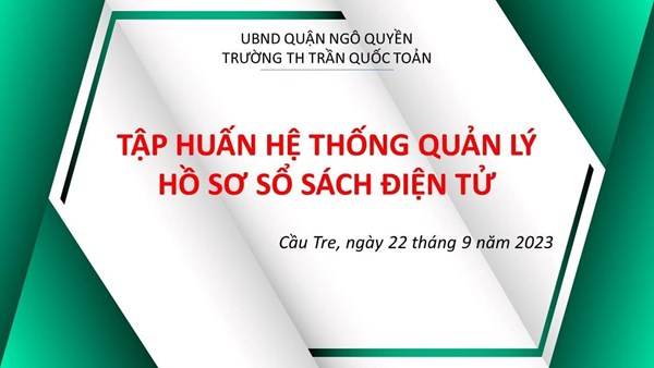 Chiều ngày 22/9/2023, trường Tiểu học Trần Quốc Toản đã tổ chức buổi tập huấn triển khai: “ Hệ thống quản lý sổ sách – Kế hoạch bài dạy”. Dưới sự chỉ đạo của đồng chí Vũ Thị Thanh Nhàn - phó hiệu trưởng nhà trường cùng tinh thần học tập nghiêm túc, tất cả cán bộ, giáo viên đã nắm chắc các bước quản lí hồ sơ, gửi tài liệu lên hệ thống phần mềm. Đây là buổi tập huấn rất ý nghĩa và thiết thực, phù hợp với nguyện vọng của giáo viên. Đồng thời tạo điều kiện để nhà trường triển khai và thực hiện tốt nhiệm vụ năm học 2023 - 2024.
