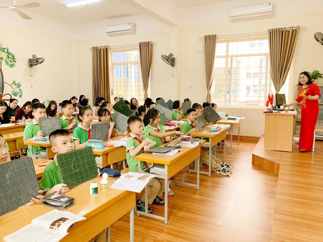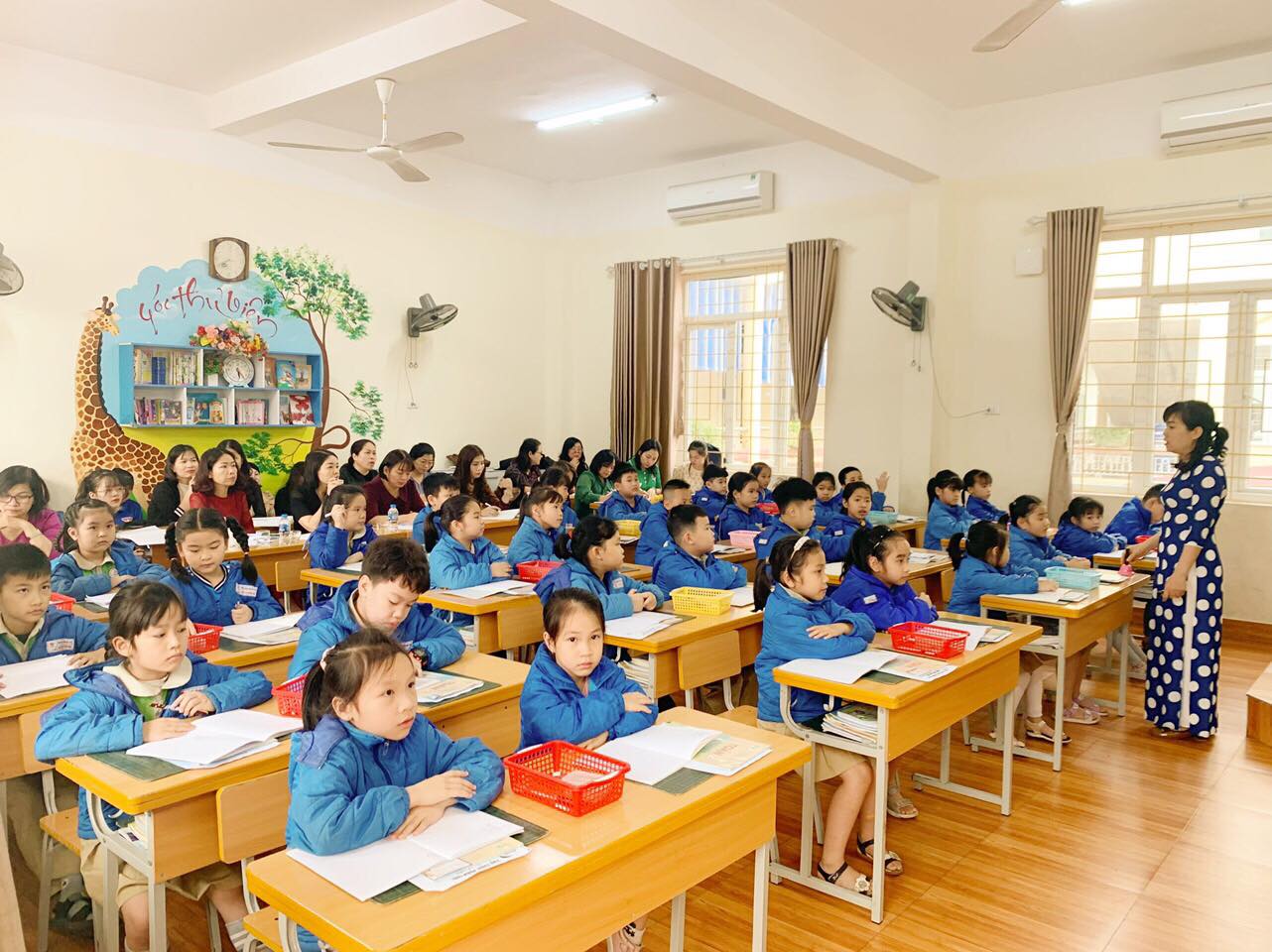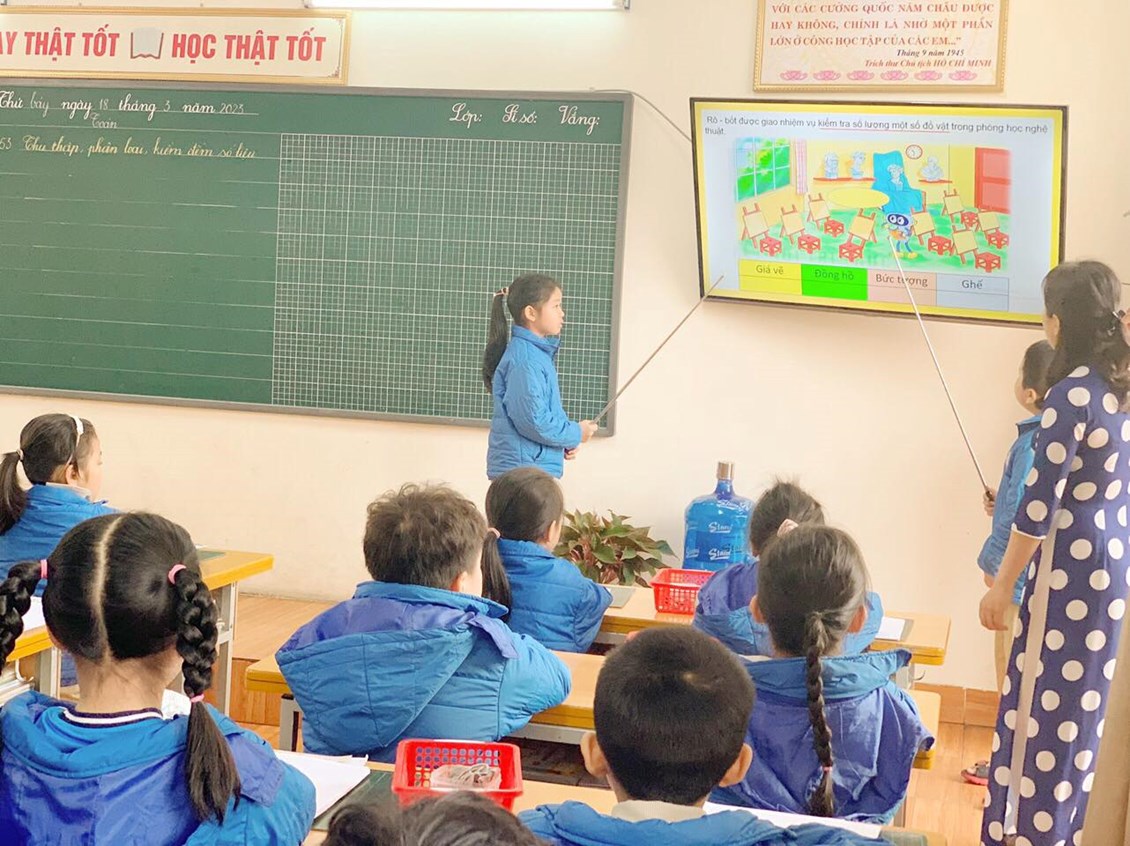 Thực hiện lên lớp chuyên đề là tiết dạy của cô giáo Trần Thị Thu Hoài với bài dạy Môn Toán - Khối 2 “ Tiết 153 - Thu thập, phân loại , kiểm đếm số liệu” và tiết dạy của cô giáo Vũ Thị Kim Ngân với bài dạy môn Lịch sử - Khối 5 “ Chiến thắng Điện Biên Phủ trên không”.