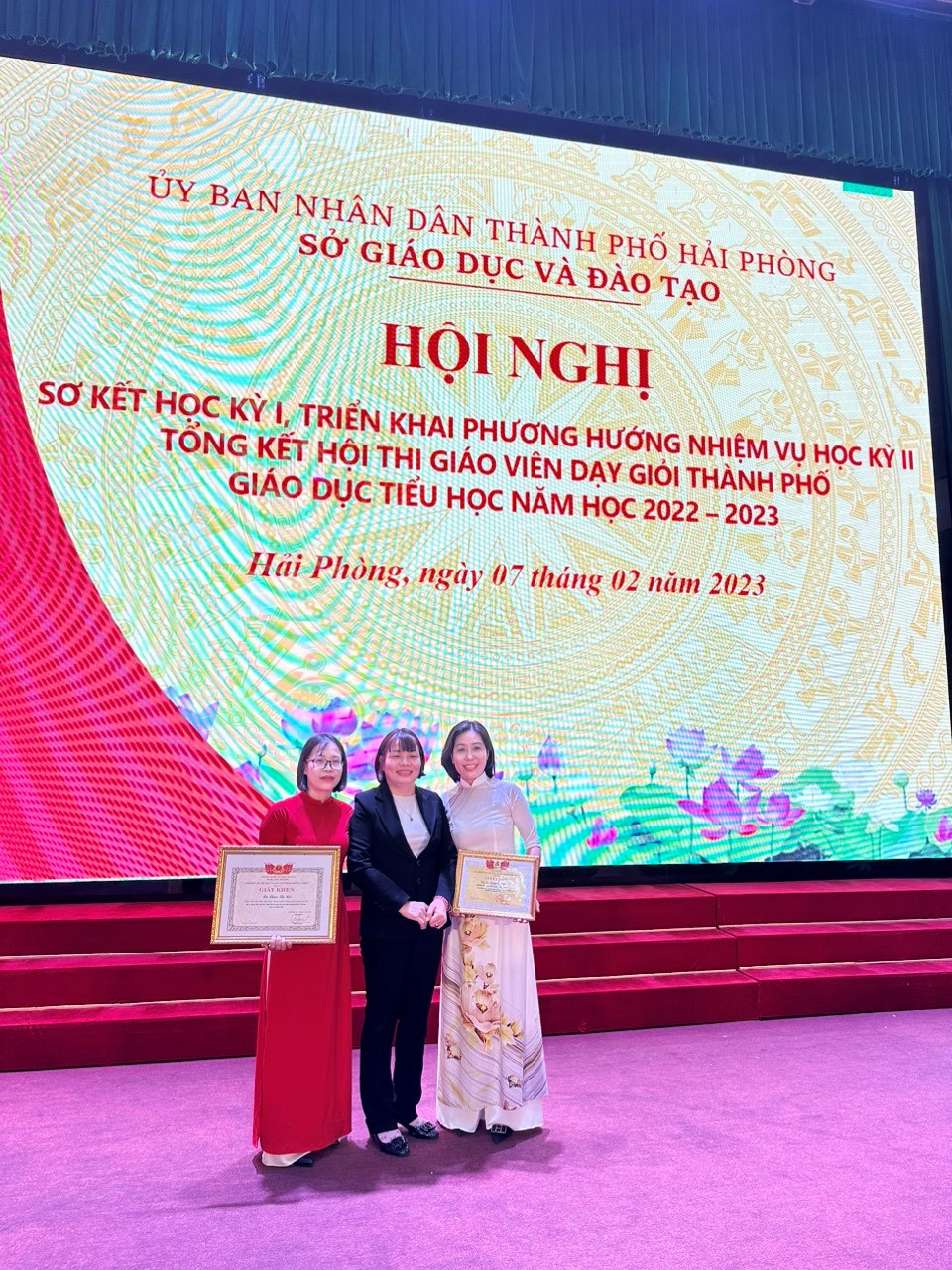 - Cô giáo Phạm Thị Hải – được nhận Giấy khen của Giám đốc Sở Giáo dục và đào tạo, đạt thành tích xuất sắc trong Hội thi giáo viên dạy giỏi thành phố cấp Tiểu học.
