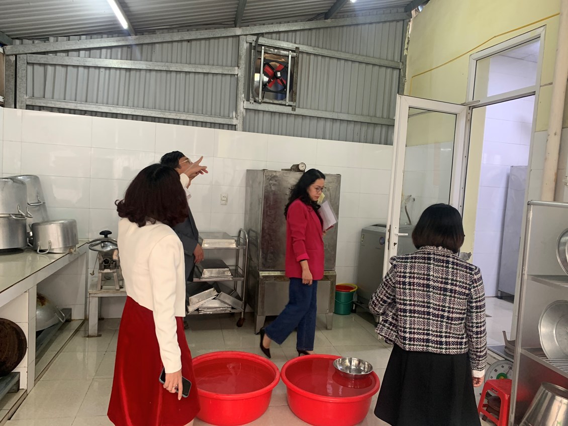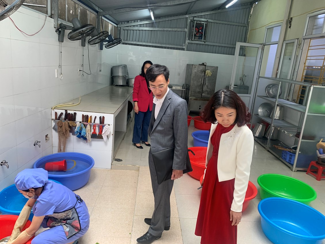 Tại buổi kiểm tra, đoàn đã tiến hành kiểm tra về hồ sơ pháp lý của nhà trường như giấy chứng nhận cơ sở đủ điều kiện an toàn vệ sinh thực phẩm, giấy xác nhận kiến thức về an toàn vệ sinh thực phẩm, giấy xác nhận đủ sức khỏe của những người trực tiếp chế biến, phục vụ tại bếp ăn. Kiểm tra điều kiện vệ sinh đối với cơ sở, điều kiện trang thiết bị dụng cụ, điều kiện về con người, nguyên liệu, phụ gia thực phẩm, nguồn nước... Việc lưu mẫu thức ăn đảm bảo đúng quy định về thời gian, lượng mẫu lưu, thực hiện lưu mẫu thức ăn 24h theo quy định.