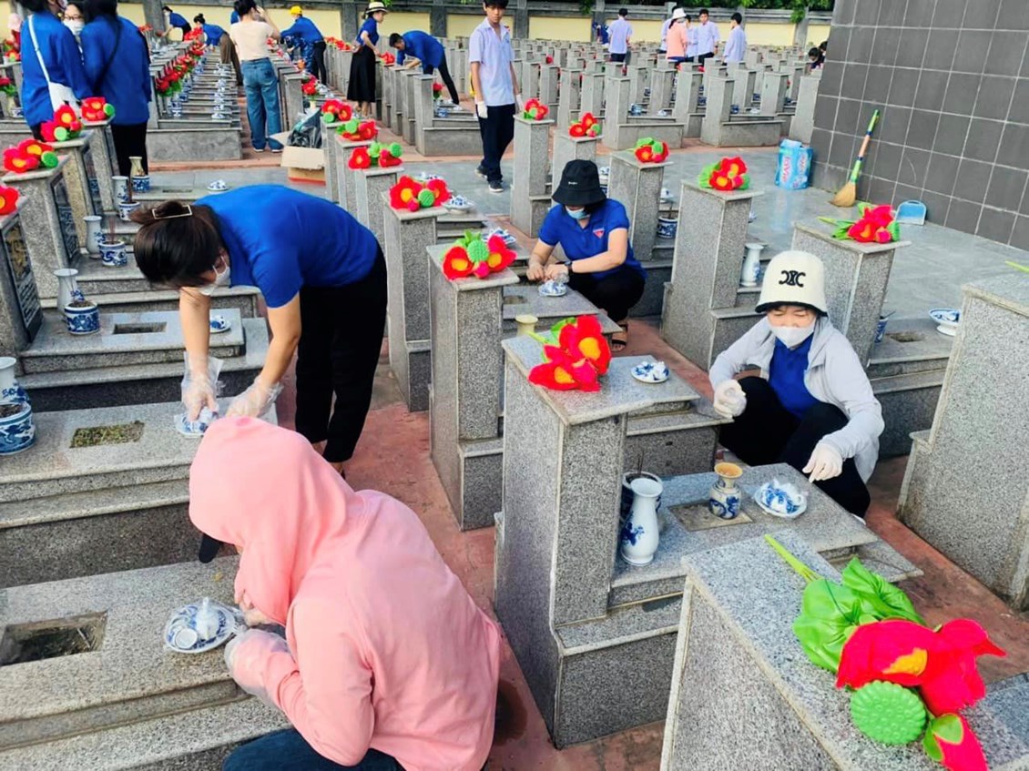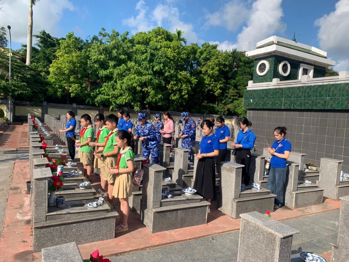 Sáng 23/7/2023, Chi đoàn giáo viên - Liên đội TH Trần Quốc Toản cùng đơn vị kết nghĩa Đoàn Trinh sát số 1 - Bộ Tư lệnh - Cảnh sát biển đã tham gia các hoạt động tri ân các anh hùng liệt sĩ tại nghĩa trang liệt sĩ quận Ngô Quyền do Quận Đoàn tổ chức. Các đ/c đoàn viên trong chi đoàn, các em học sinh đại diện cho liên đội cùng các đơn vị trên địa bàn quận quét dọn vệ sinh, dâng hoa cho các phần mộ liệt sĩ.