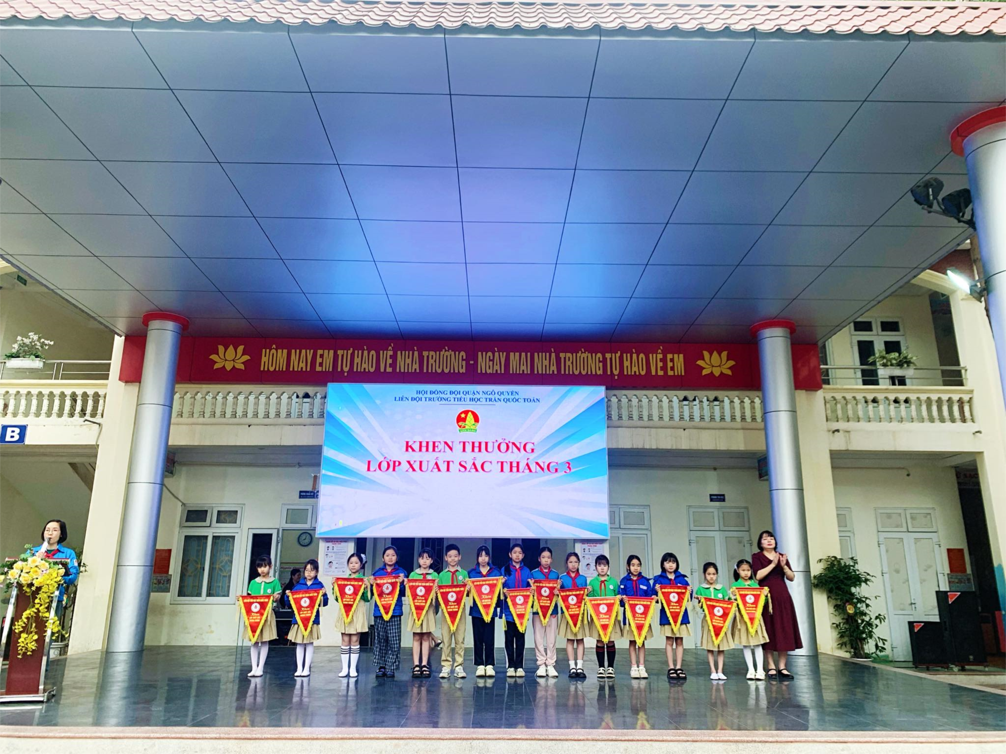 Sáng ngày 8/4/2025 Liên đội trường Tiểu học Trần Quốc Toản tổ chức lễ chào cờ tháng 4 thành công tốt đẹp.