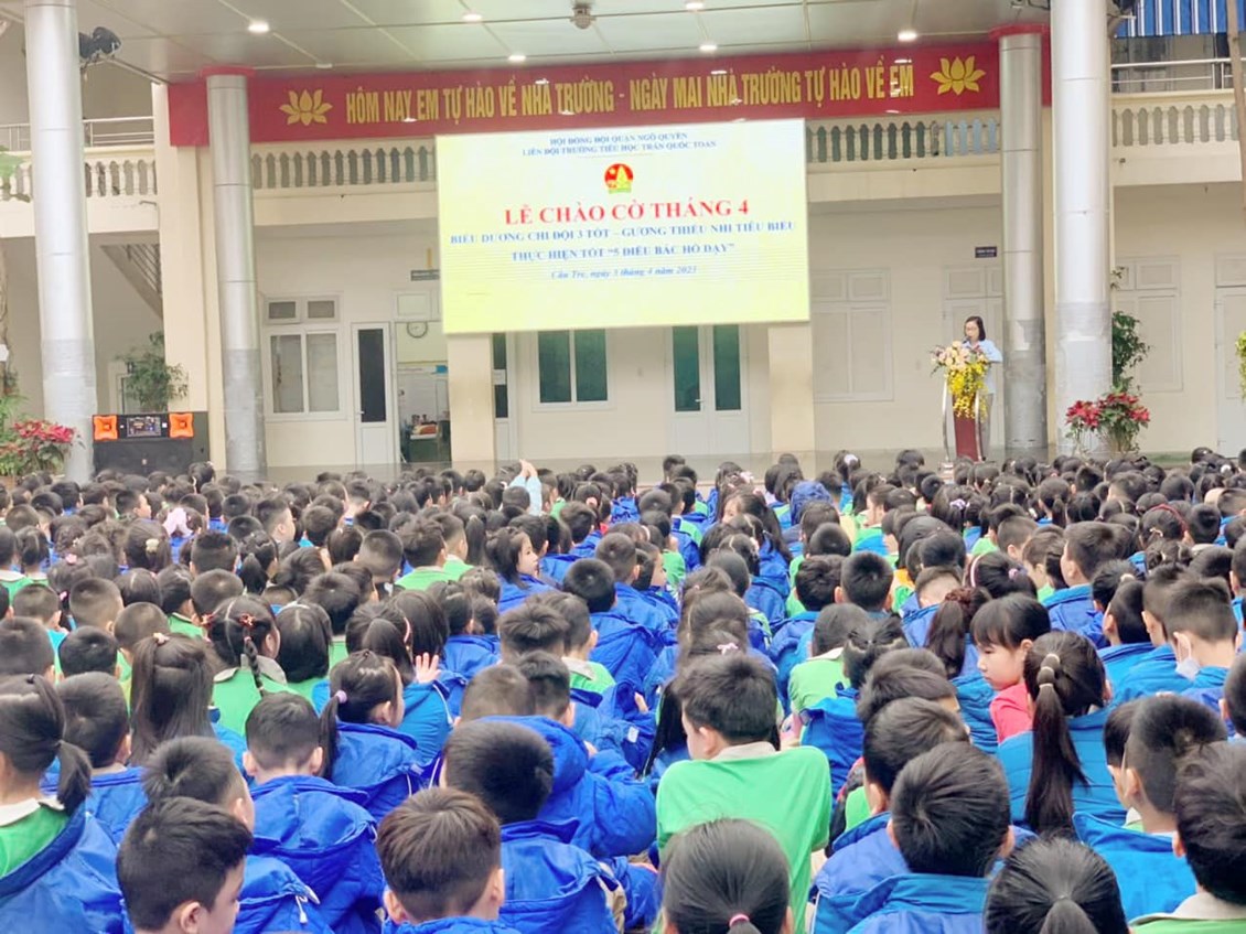 Sáng thứ 2 tuần đầu tiên của tháng 4, Liên đội trường TH Trần Quốc Toản long trọng tổ chức lễ chào cờ tháng nhằm đánh giá kết quả hoạt động tháng 3 và triển khai kế hoạch hoạt động tháng 4.