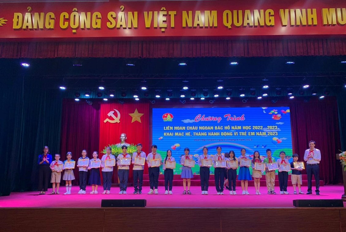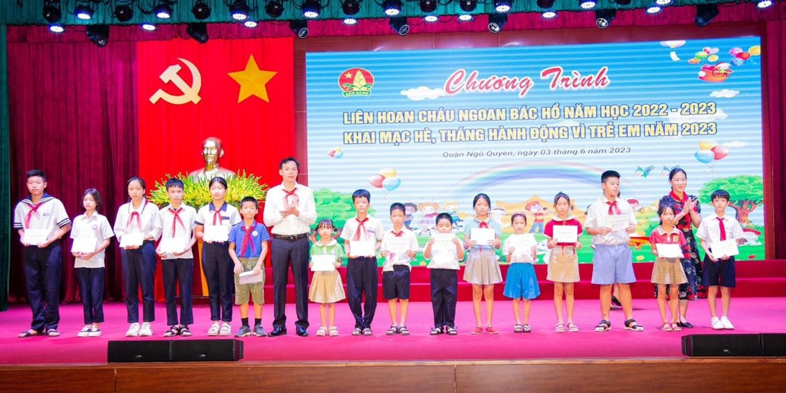 Thực hiện Chương trình công tác Đội và phong trào thiếu nhi năm học 2022-2023; Để kịp thời ghi nhận và biểu dương các tập thể và cá nhân có thành tích xuất sắc trong phong trào "Liên đội 3 tốt", "Chi đội 3 tốt", "Thiếu nhi Quận Ngô Quyền thi đua làm theo 5 điều Bác Hồ dạy", sáng ngày 3/6 Ban Thường vụ Đoàn - Hội đồng Đội quận tổ chức chương trình "Liên hoan cháu ngoan Bác Hồ năm học 2022 - 2023; Khai mạc hè, Tháng hành động vì trẻ em năm 2023".