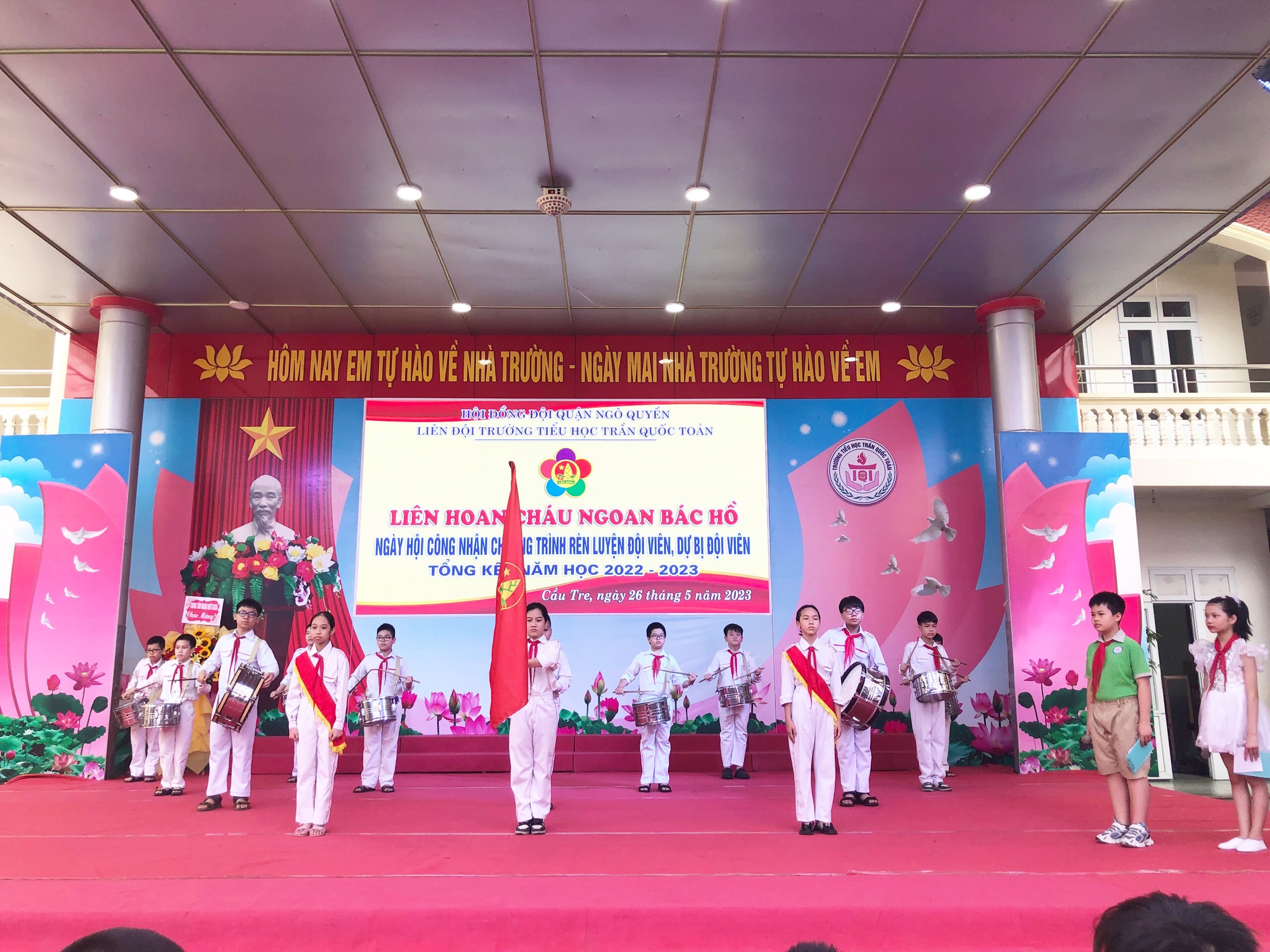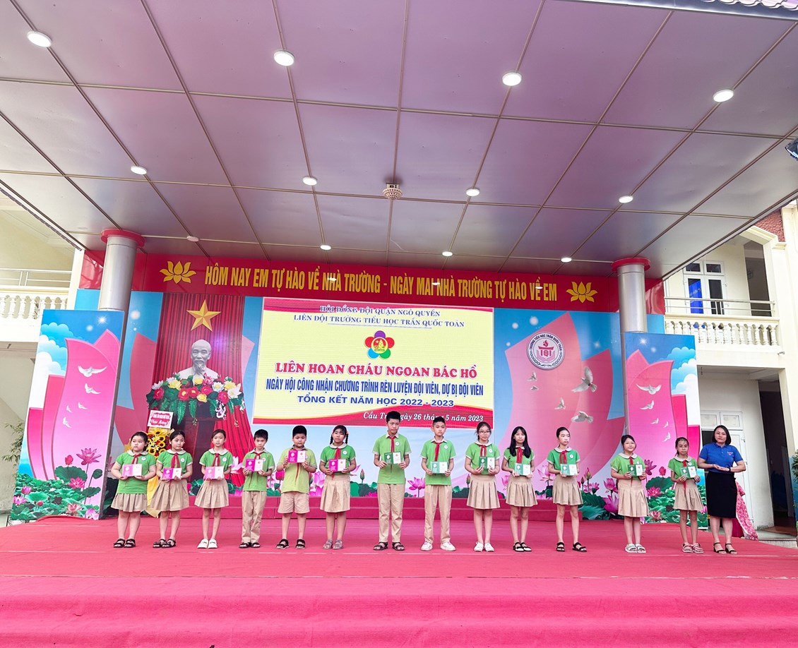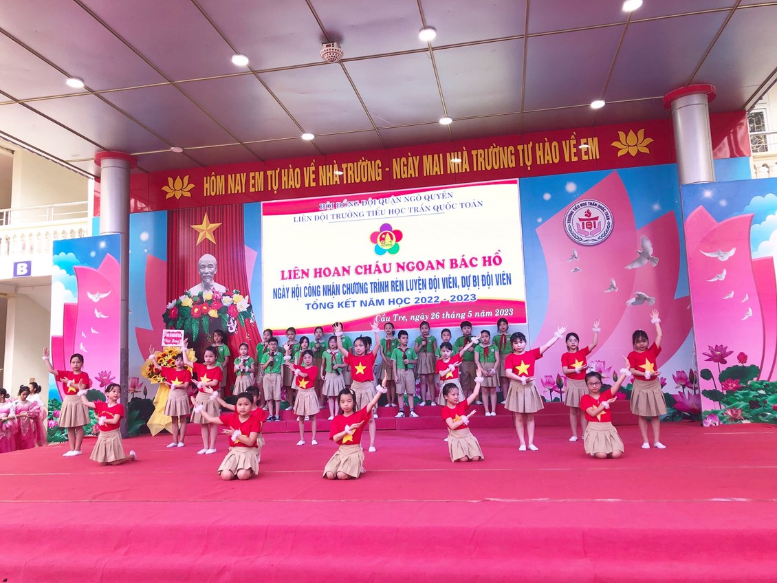 Thực hiện kế hoạch công tác Đội và phong trào thiếu nhi năm học 2022 – 2023 của Hội đồng Đội quận Ngô Quyền, sáng 26/5/2023, trường Tiểu học Trần Quốc Toản long trọng tổ chức Liên hoan cháu ngoan Bác Hồ - Ngày hội công nhận chương trình Rèn luyện đội viên, dự bị đội viên, Tổng kết năm học 2022 – 2023 và Khai mạc hè phường Cầu Tre năm 2023.
