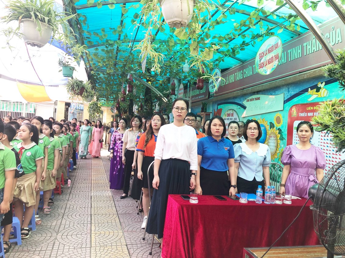 - Cô giáo Lê Thị Hoa- Bí thư chi bộ - Hiệu trưởng nhà trường; các thầy cô giáo trong hội đồng sư phạm và đặc biệt là toàn thể các em học sinh trong toàn Liên đội đã có mặt đông đủ.
