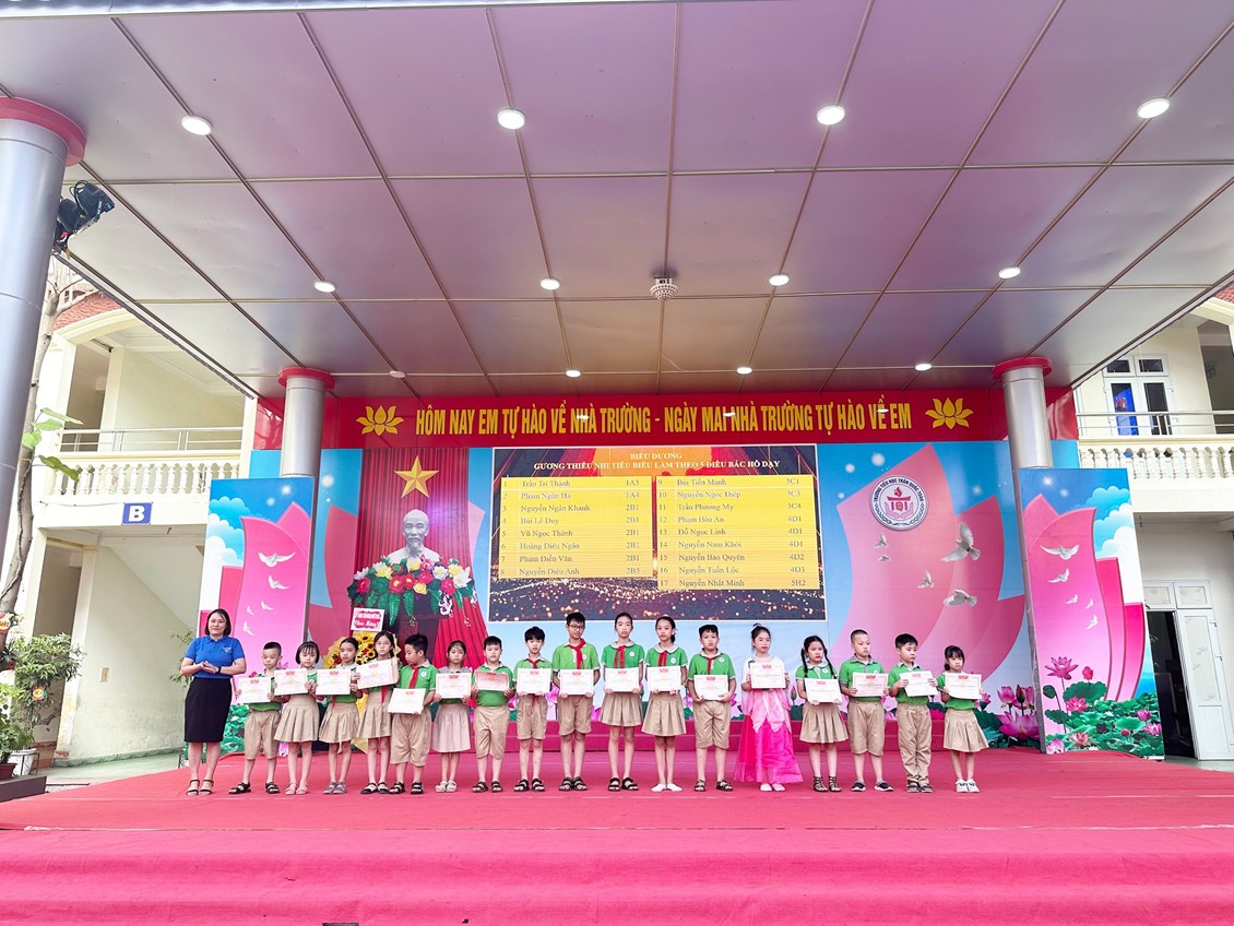 + Biểu dương 5 chi đội đạt “Chi đội 3 tốt tiêu biểu xuất sắc” và 17 “ Gương thiếu nhi tiêu biểu làm theo 5 điều Bác Hồ dạy”.
