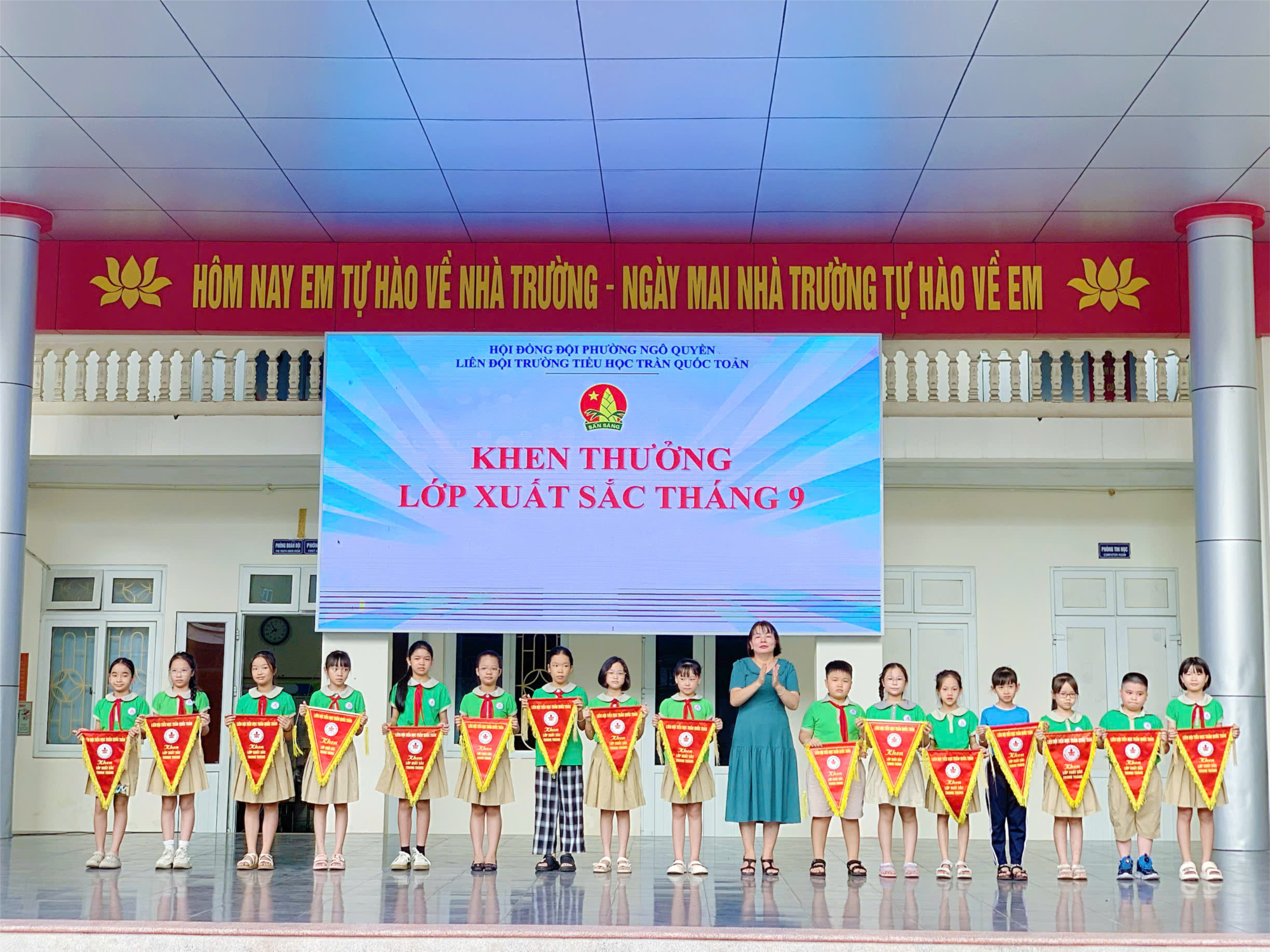Tại buổi lễ chào cờ Liên đội đã tuyên dương 11 chi đội 3 tốt, 5 lớp nhi đồng xuất sắc và 27 gương thiếu nhi tiêu biểu thực hiện tốt 5 điều Bác Hồ dạy.