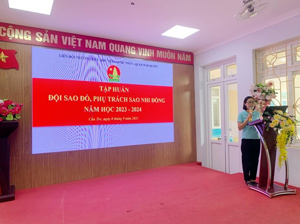Thực hiện kế hoạch công tác Đội và phong trào thiếu nhi năm học 2023-2024, sáng ngày 8/9/2023 Liên đội trường TH Trần Quốc Toản tổ chức tập huấn đội sao đỏ và phụ trách sao nhi đồng. Tham gia lớp tập huấn có 64 em học sinh đại diện khối 4,5.