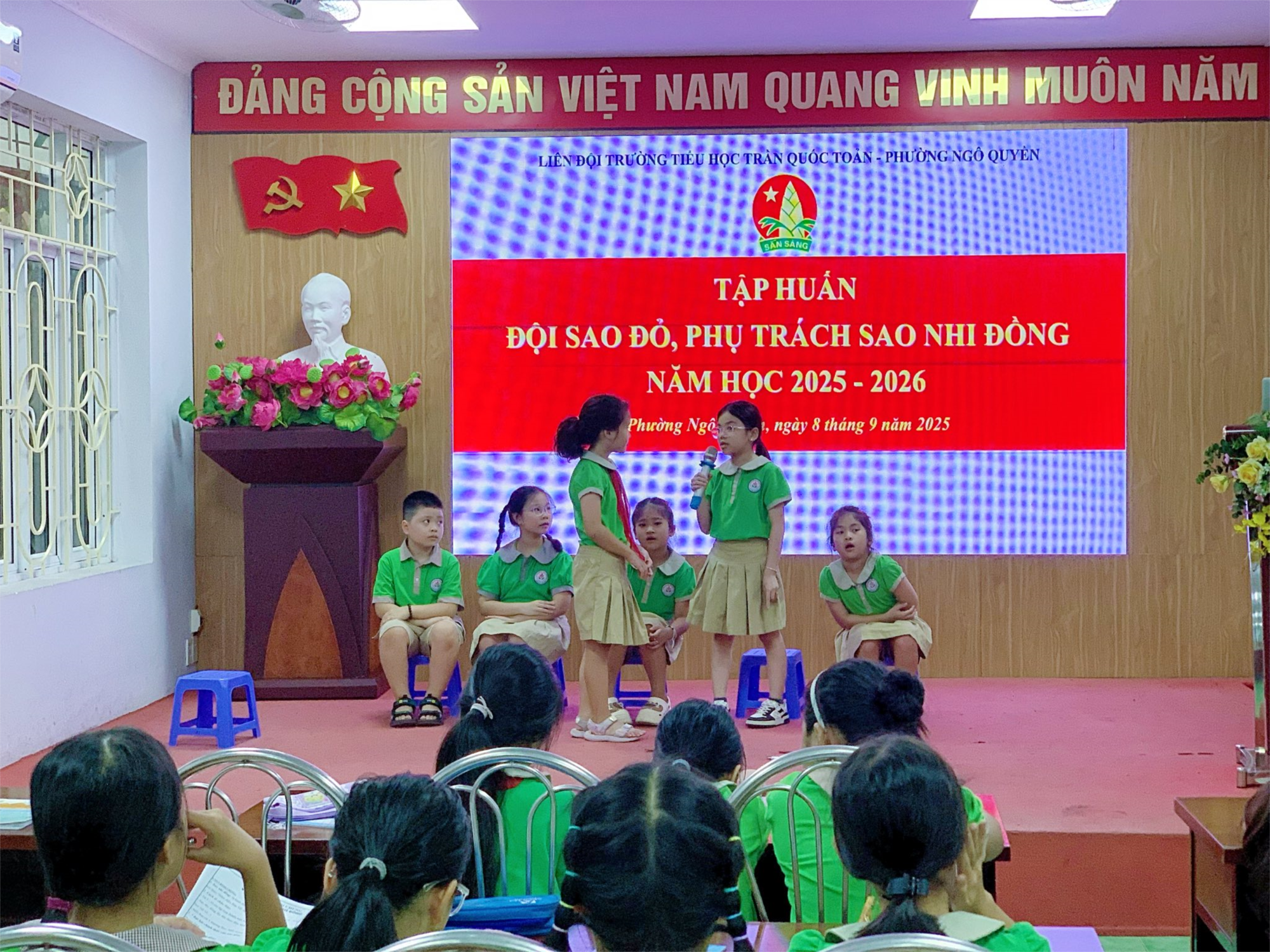 Nhằm nâng cao kỹ năng, tinh thần trách nhiệm và ý thức tổ chức kỷ luật cho học sinh, vừa qua, Liên đội trường tiểu học Trần Quốc Toản đã tổ chức buổi tập huấn dành cho 11 đội Sao đỏ và 55 em phụ trách Sao trong toàn trường vào ngày 8/9/2025.
