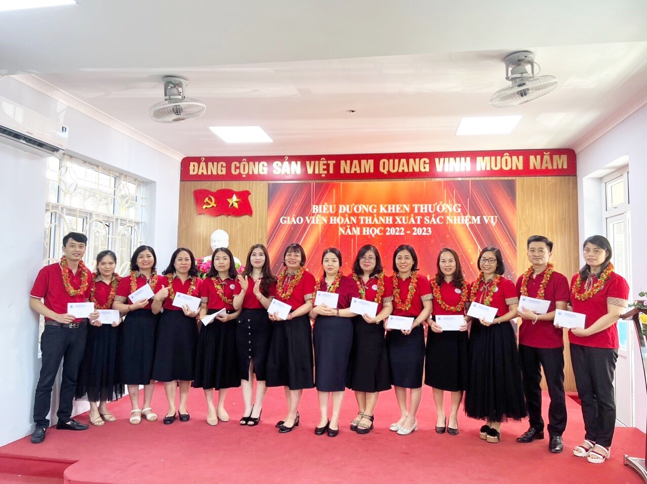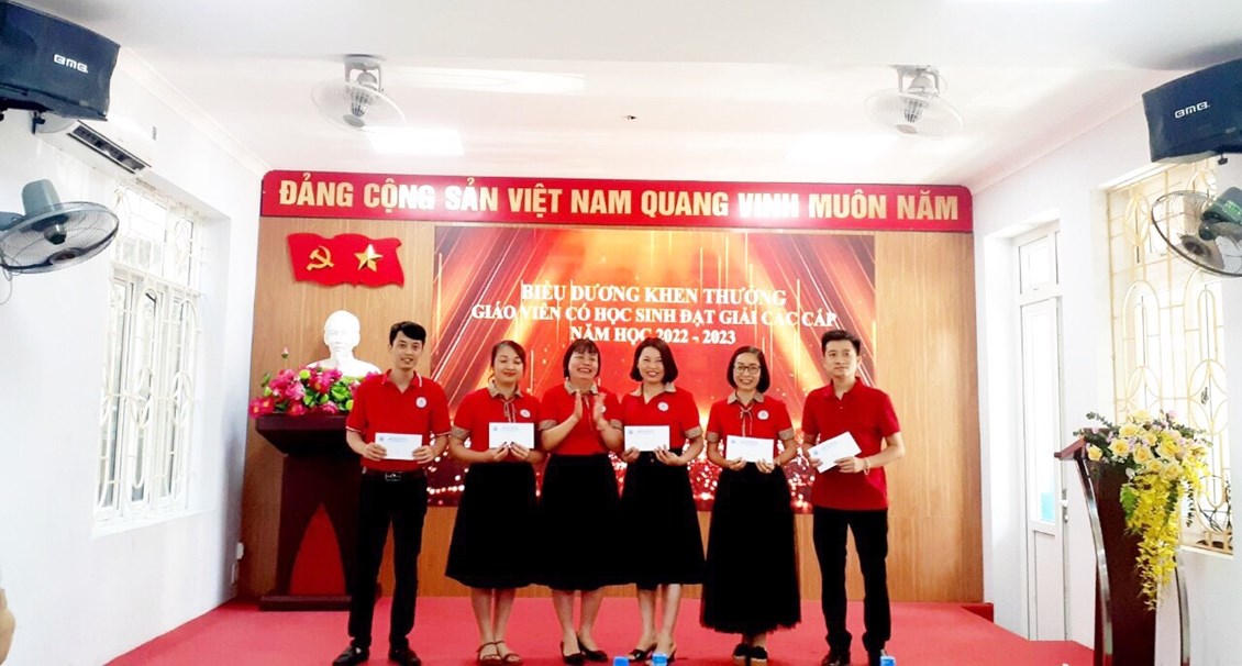 - Bên cạnh đó, nhà trường cũng biểu dương các giáo viên có học sinh đạt giải cao trong các cuộc thi chính thức, cuộc thi hội nhập và giao lưu; các đồng chí công đoàn viên xuất sắc và đoàn viên chi đoàn xuất sắc trong năm học.