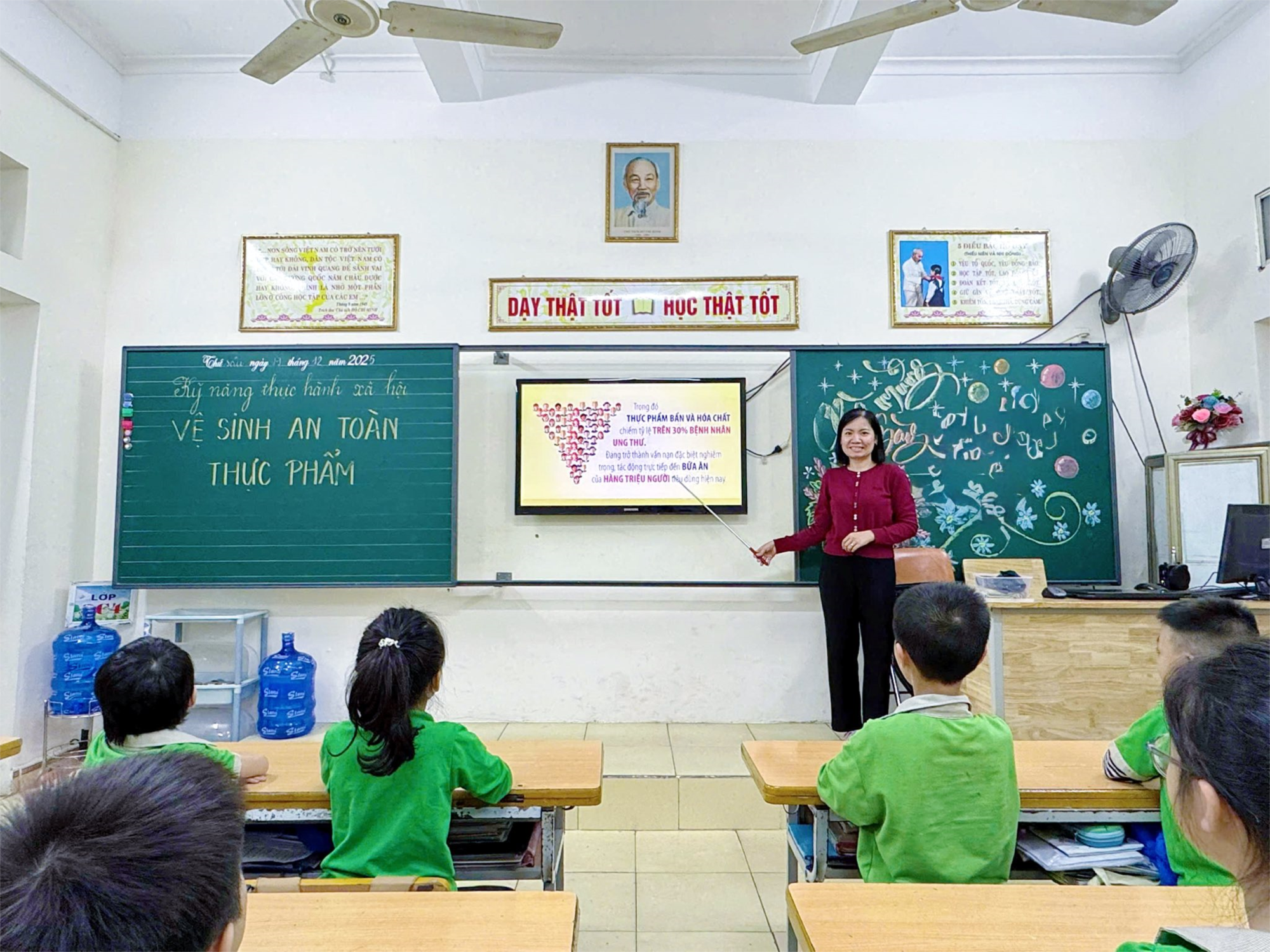 Tại buổi sinh hoạt, các em học sinh được tìm hiểu những kiến thức cơ bản về cách lựa chọn thực phẩm sạch, ăn uống hợp vệ sinh, nói không với quà vặt không rõ nguồn gốc. Thông qua các hình ảnh minh họa, câu hỏi tình huống các em hiểu rõ hơn tác hại của thực phẩm không an toàn đối với sức khỏe.