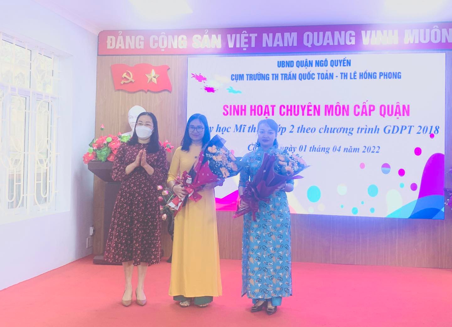 Thực hiện kế hoạch năm học 2021 – 2022, chiều ngày 1/4/2022 cụm trường TH Trần Quốc Toản, TH Lê Hồng Phong tổ chức sinh hoạt chuyên môn cấp quận dạy học Mĩ thuật lớp 2 theo chương trình GDPT 2018. Đến dự và chỉ đạo buổi sinh hoạt chuyên môn có bà Nguyễn Thị Hải Hạnh – Phó trưởng phòng GD&ĐT quận Ngô Quyền, bà Nguyễn Thị Như Quỳnh – Chuyên viên phòng GD&ĐT quận Ngô Quyền cùng các ông bà phó hiệu trưởng, giáo viên dạy môn Mĩ thuật các trường tiểu học trong quận. Lên lớp tiết dạy minh họa cho buổi sinh hoạt chuyên môn tiết 1 là cô giáo Vũ Thanh Huyền – Trường TH Lê Hồng Phong, tiết 2 là cô giáo Đặng Thị Phương Thùy – Trường TH Trần Quốc Toản được đánh giá thành công tốt đẹp.